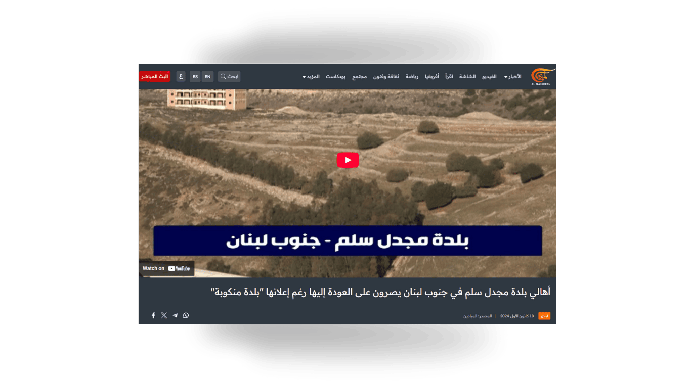 فيوم أعلن وقف إطلاق النار في تشرن الثاني 2025، لم يتوانى شبان مجدل سلم الذين نزحوا عن القرية، عن العودة إليها مباشرة في ذلك اليوم، بلا عادوا قبل أن تشير الساعة الى الوقت الفعلي لبدء تنفيذ الاتفاق.
